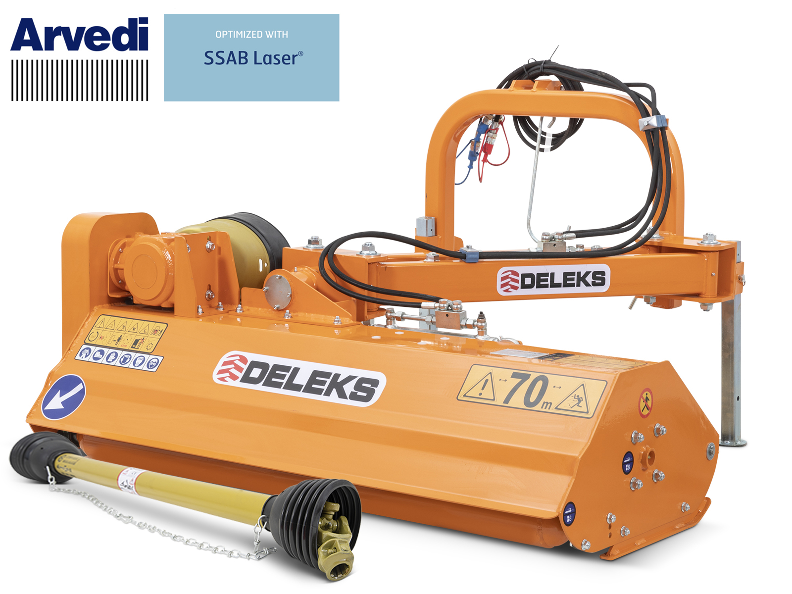 Den kan også bruges til beskæring og trimning af buske og kan hydraulisk vinkles 88 grader lodret og 60 grader nedad for at nå flodkante og diger. 3-punktsfæste kat. 1, 4 hydraulik slange, PTO aksel 140cm CE.