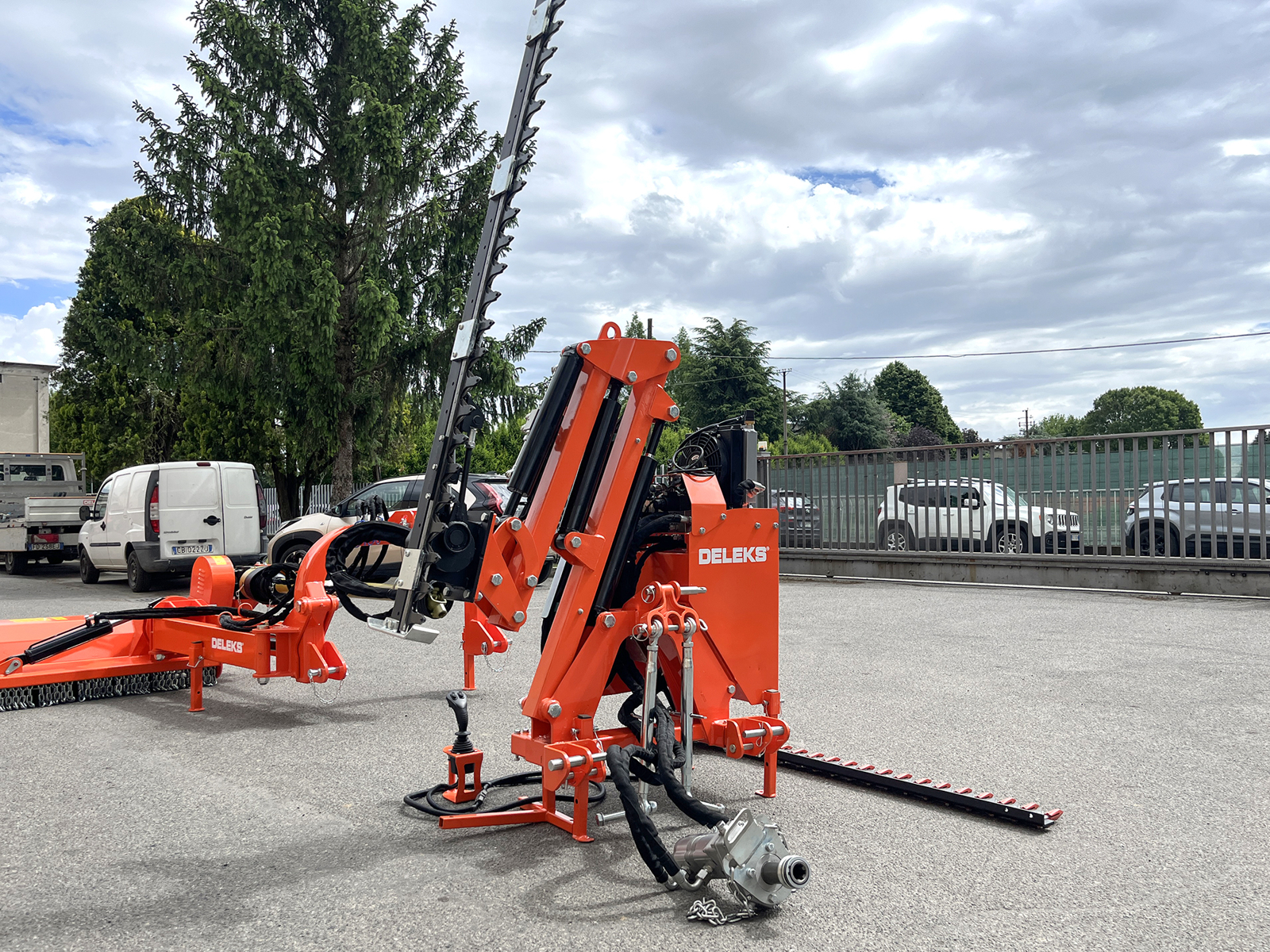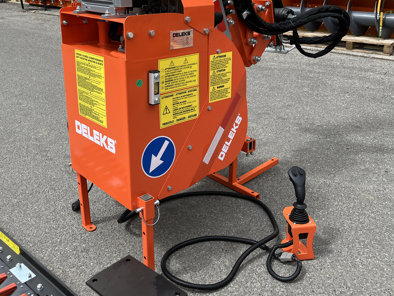 LUKHydraulisk monteret hække/kantklipper - DELEKS® MERLO, kan montere et klippehoved med 80-100-110 cm klipning, eller en 130-160 eller 180 cm hækkeklipperstang. Sideskærer - Joystick.