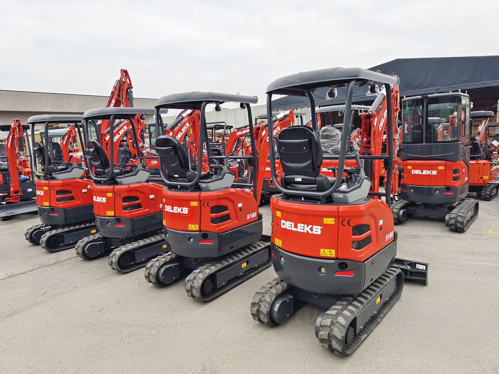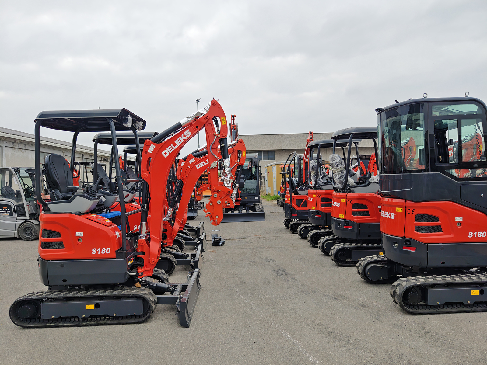 DELEKS® S180 er en kompakt bæltegraver udstyret med en Kubota D902-dieselmotor (3 cylindre), et hydraulisk aksialstempelsystem med variabel slagvolumen (64,4 L/min), udtrækkeligt undervogn, svingbar bom og to hastigheder.