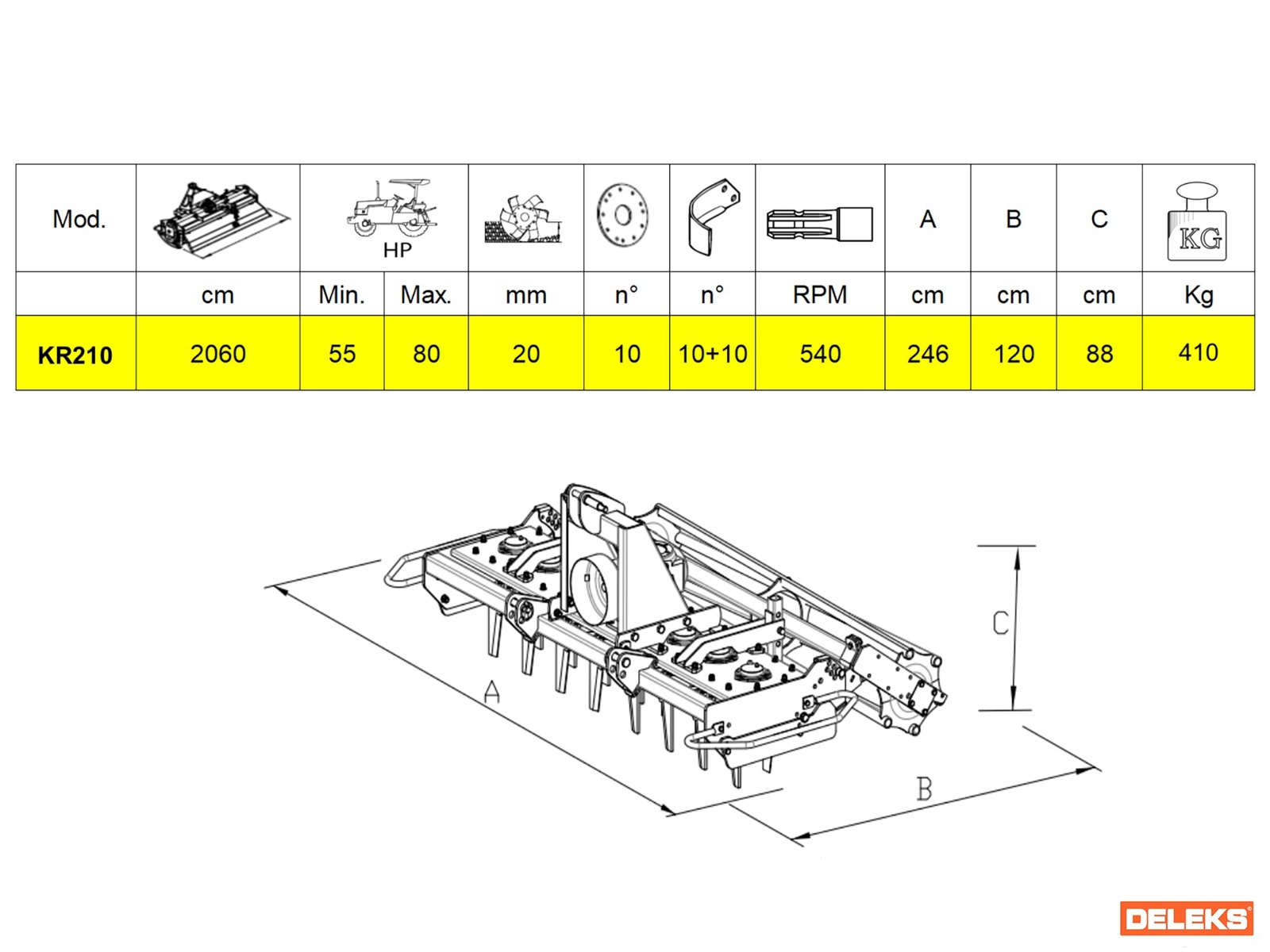KR-modelharven er designet til små landbrug og til bearbejdning af jord for specialister indenfor dyrkninger som gartneri og vindyrkning. Den særlige opmærksomhed, der gives til dens overordnede dimensioner og lethed, gør den til et ideelt redskab til traktorer med lav HK. Det specielle design af knivene gør det muligt at bryde jorden op med betydelig økonomi i traktorens kraftforbrug.