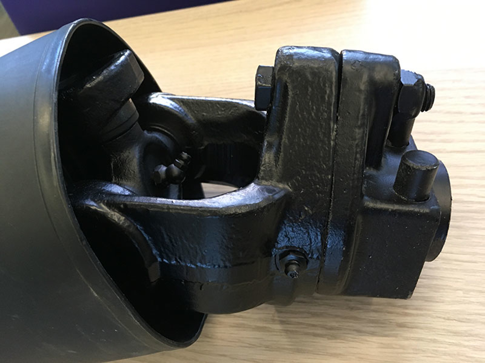 Denne anordningen forhindrer overbelastning ved hjælp af en sikringsbolt med en specificeret størrelse. Når boltsaks er af, vil navet og ågkonstruktionen holdes sammen ved hjælp af et kugleleje, der tillader de to dele rotere uafhængigt af hinanden. Den monteres på maskinens side.