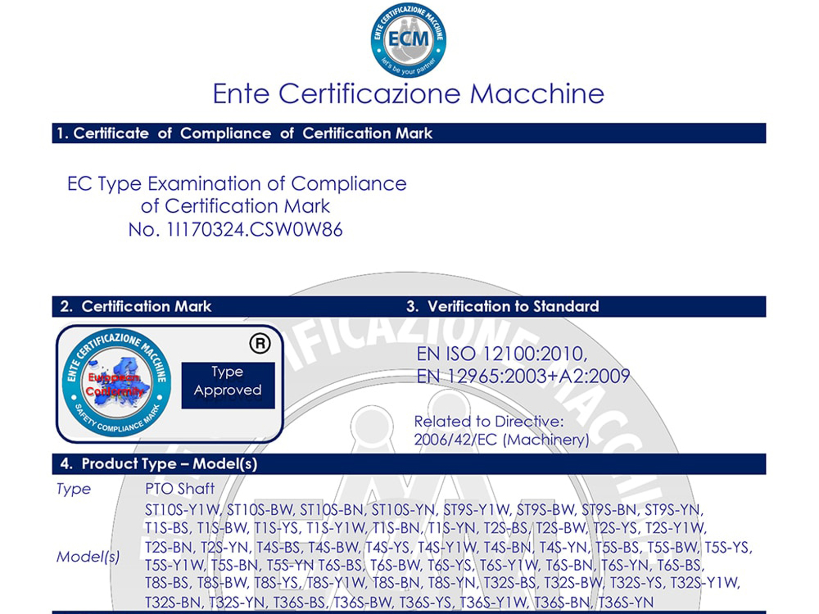 Certificeringen mærket af maskine certificeringsorgan ECM (Modena - Italien)