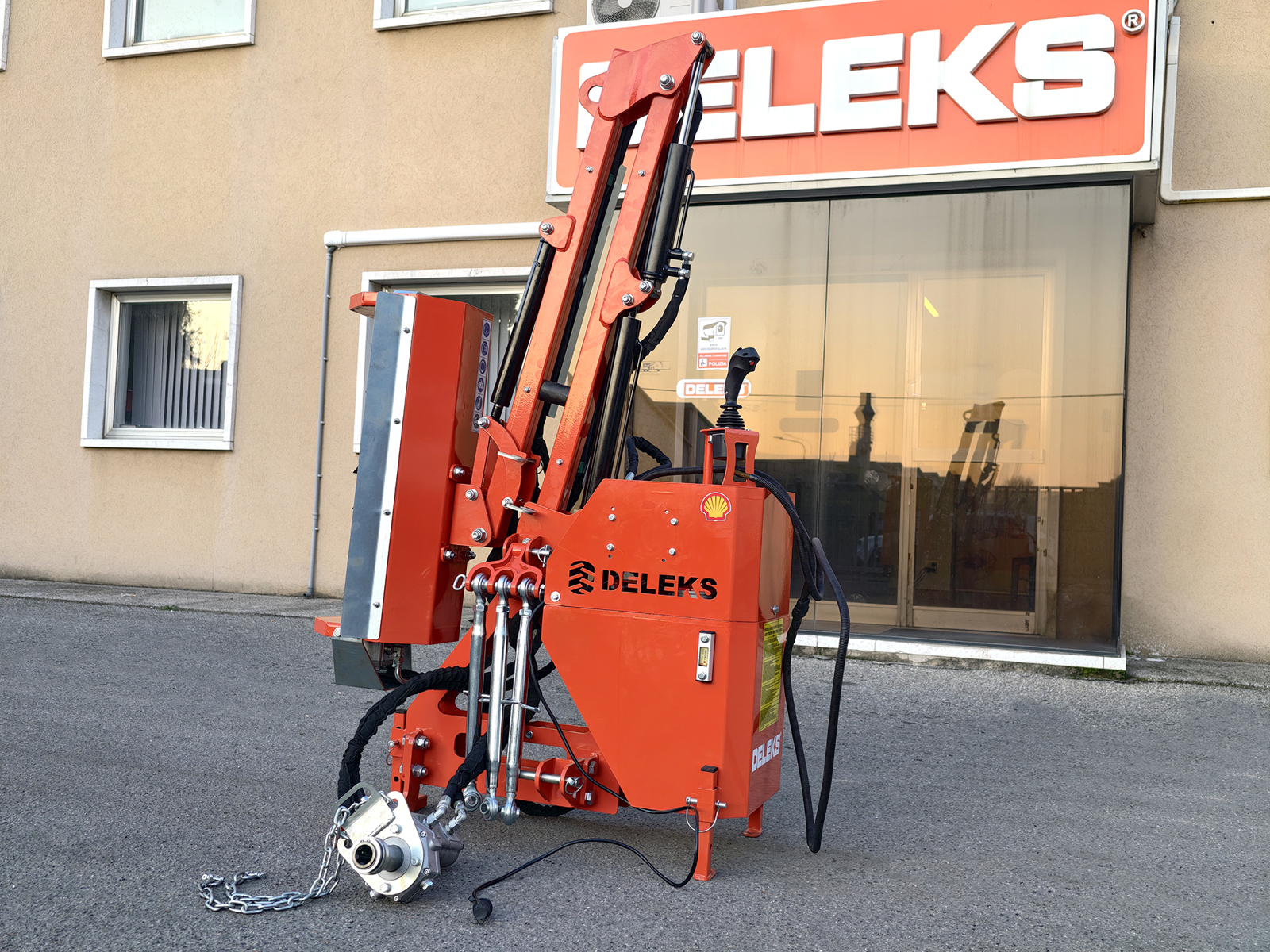 LUKHydraulisk armklipper, rabatklipper, slagleklipper til traktor DELEKS® AIRONE, kompatibel med traktorer med 3-punktsophæng Kat. 1, forberedt til slagleklippere med arbejdsbredde 60–80–100 cm eller hækkeklippere på 130–160–180 cm.