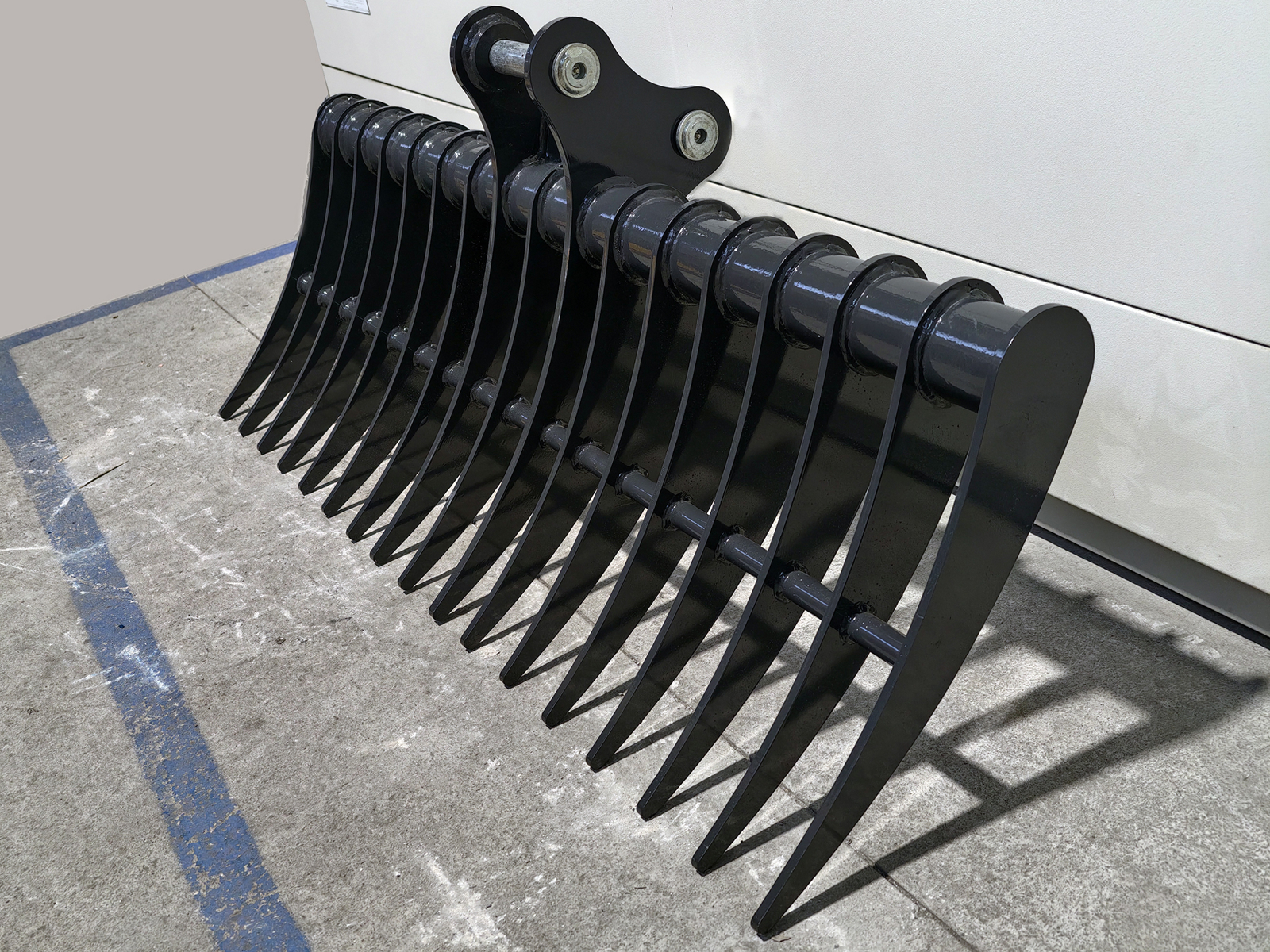 Den åbne konstruktion med forstærkede tænder med høj penetrering gør det muligt effektivt at adskille jord, sten, rødder og planterester, hvilket gør redskabet ideelt til jordforberedelse, oprydning og professionel pleje af grønne områder.