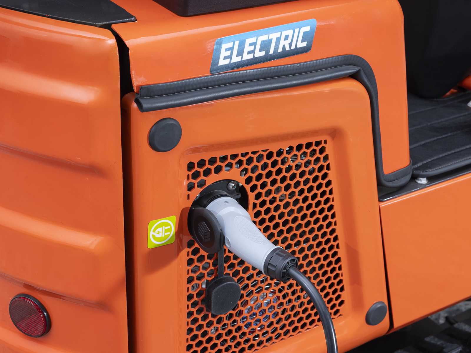 LUK100 % elektrisk DELEKS® E110 minigraver (1,1 ton), udstyret med litiumbatteri med driftstid til en hel arbejdsdag. Kompakt, støjsvag og uden emissioner.