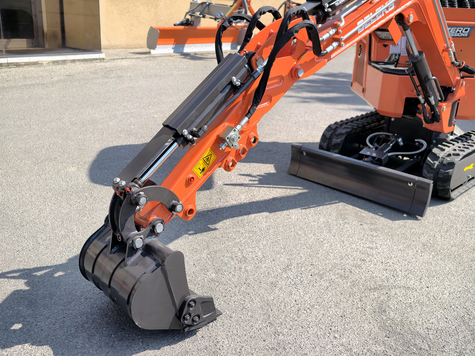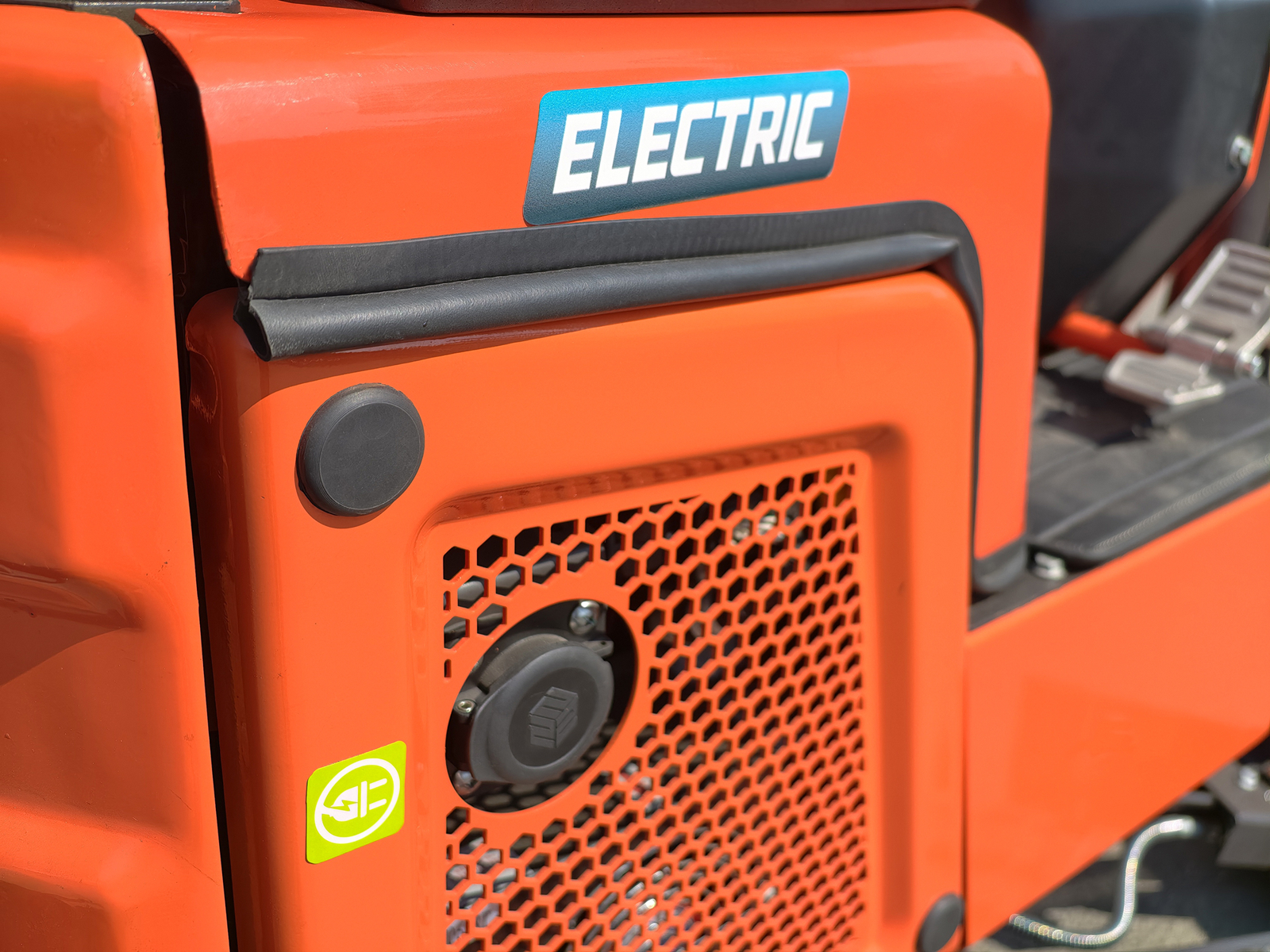 100 % elektrisk DELEKS® E110 minigraver (1,1 ton), udstyret med litiumbatteri med driftstid til en hel arbejdsdag. Kompakt, støjsvag og uden emissioner.