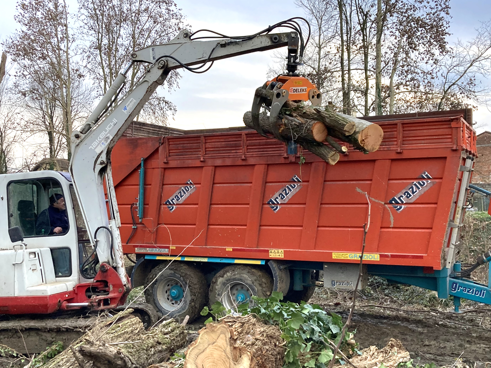 Takket være DK16s unikke design har den et godt, fast og sikkert greb på træ under fjernelse, som forhindrer at farligt materiale falder af under lastning og losning.
