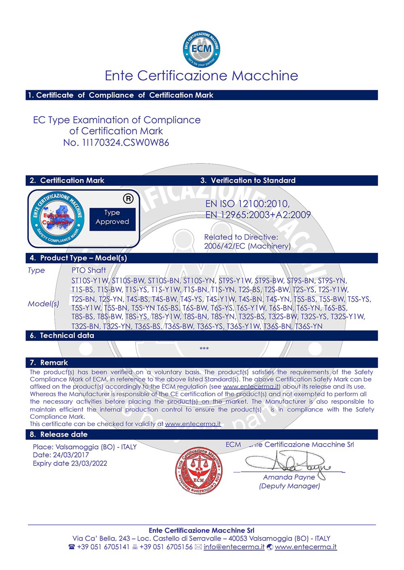 Certificeringen mærket af maskine certificeringsorgan ECM (Modena - Italien)