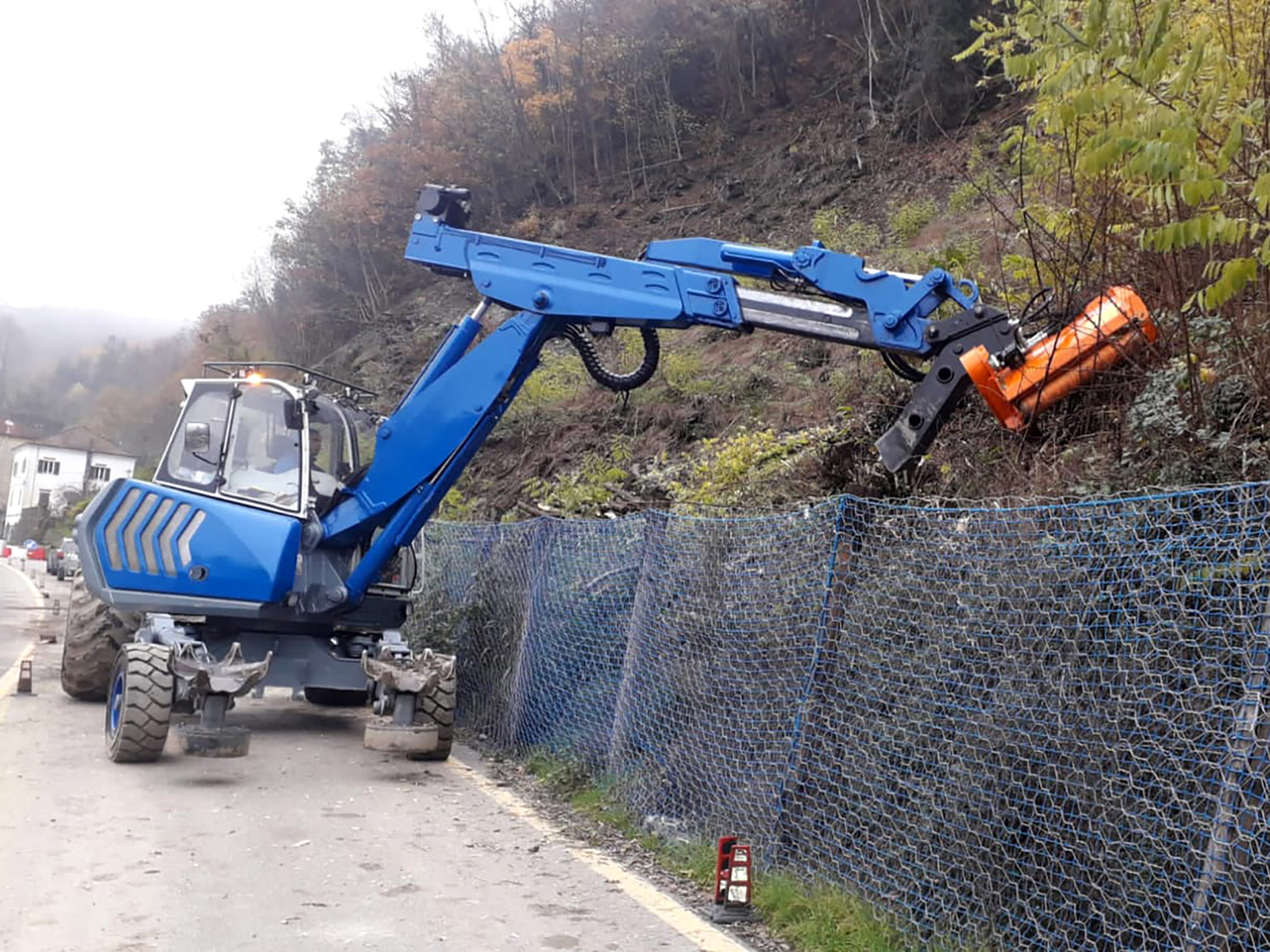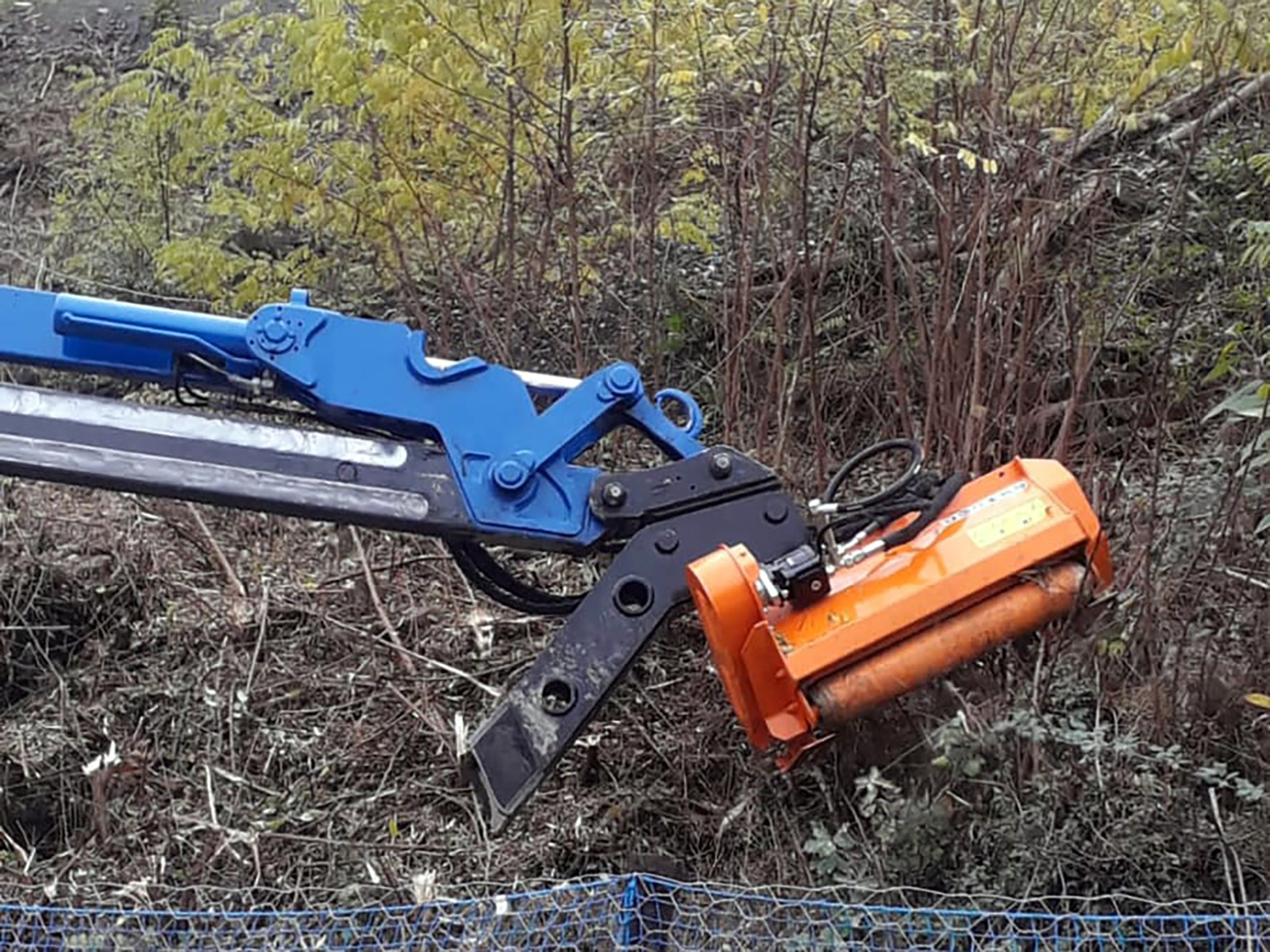 Hydraulisk tærskeværk, buskrydder til brombær, buske, grøfter, banker, dæmninger, grene. Velegnet til klipning af græs, træer og buske på op til 5 cm.