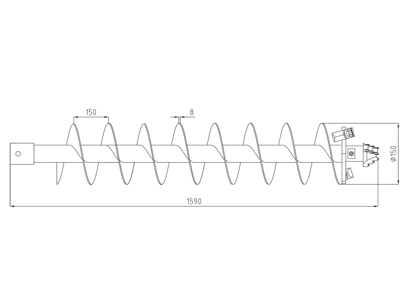 Spids 15 cm til jordbor ZHD-245/305, med knive.