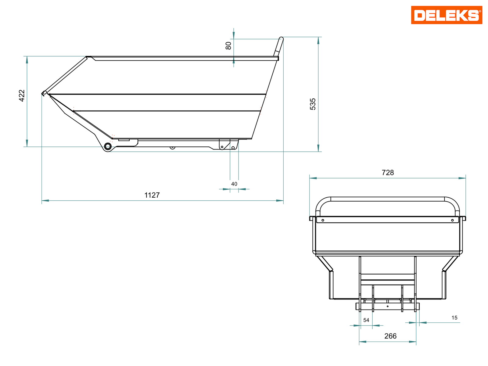 En typisk anvendelse kombineres med en DELEKS® minigraver, til transport af grus, jord, mudder, sand, byggematerialer osv...