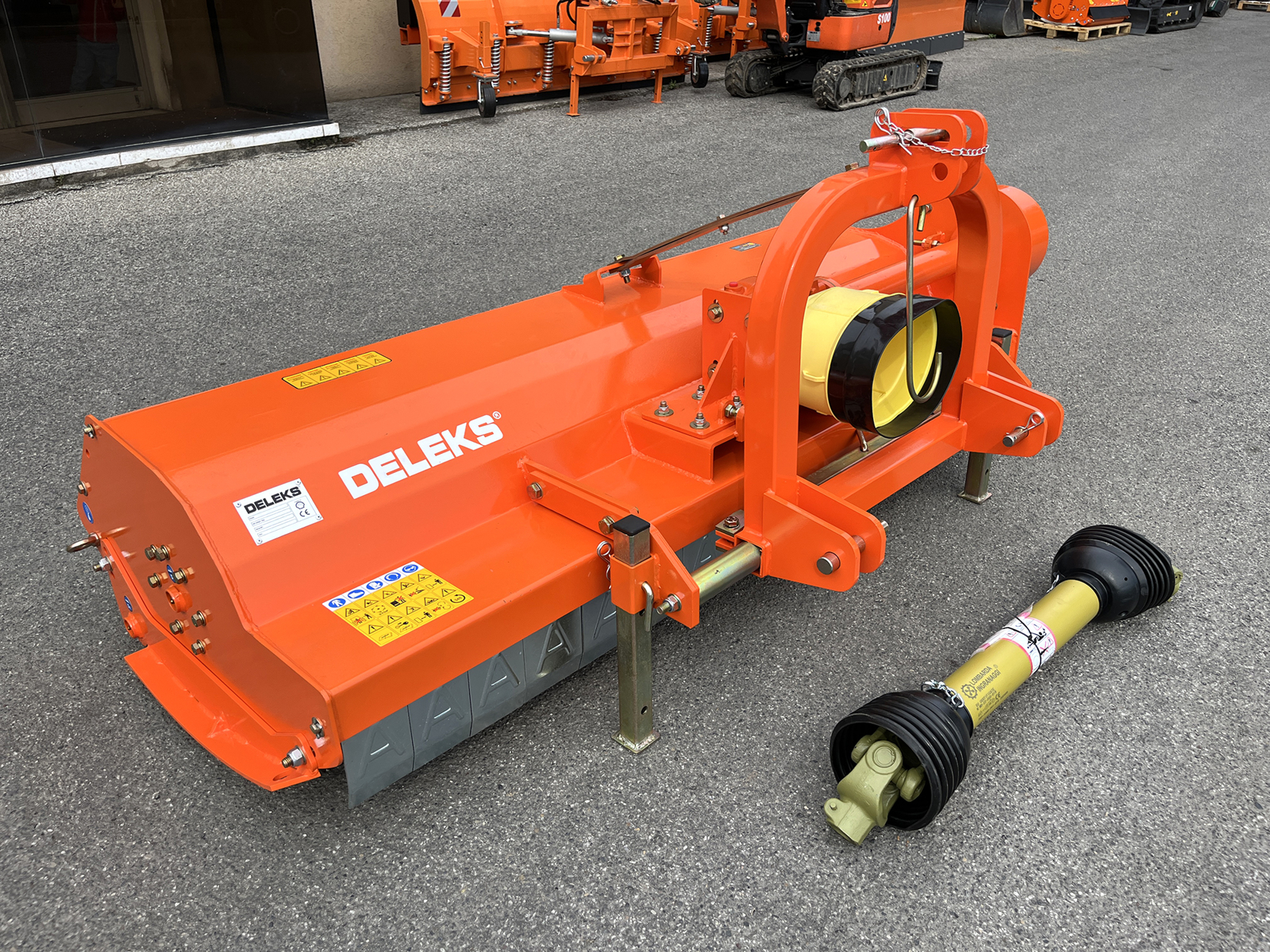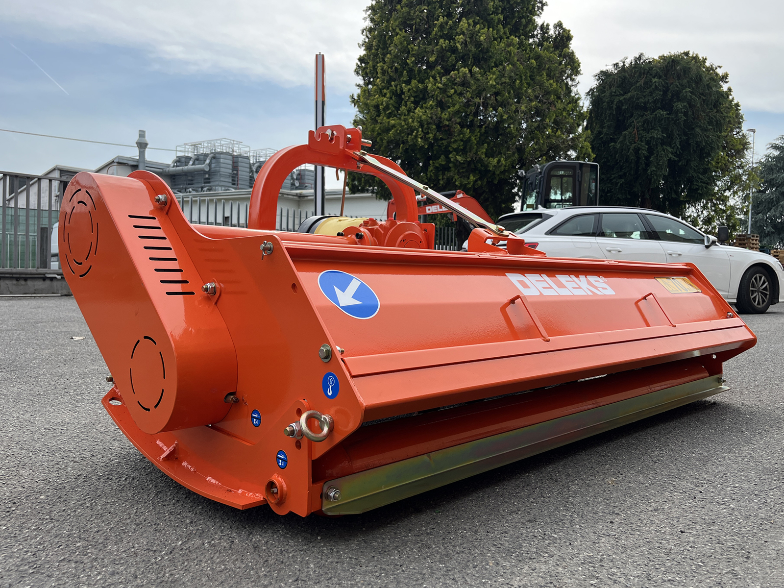 Shredder with hammers for tractor working width 200cm / 428kg - DELEKS® TIGRE-200 - flail mower max cutting diameter 4-5cm mulcher with mechanical side shift or hydraulic as optional, pto shaft CE included.