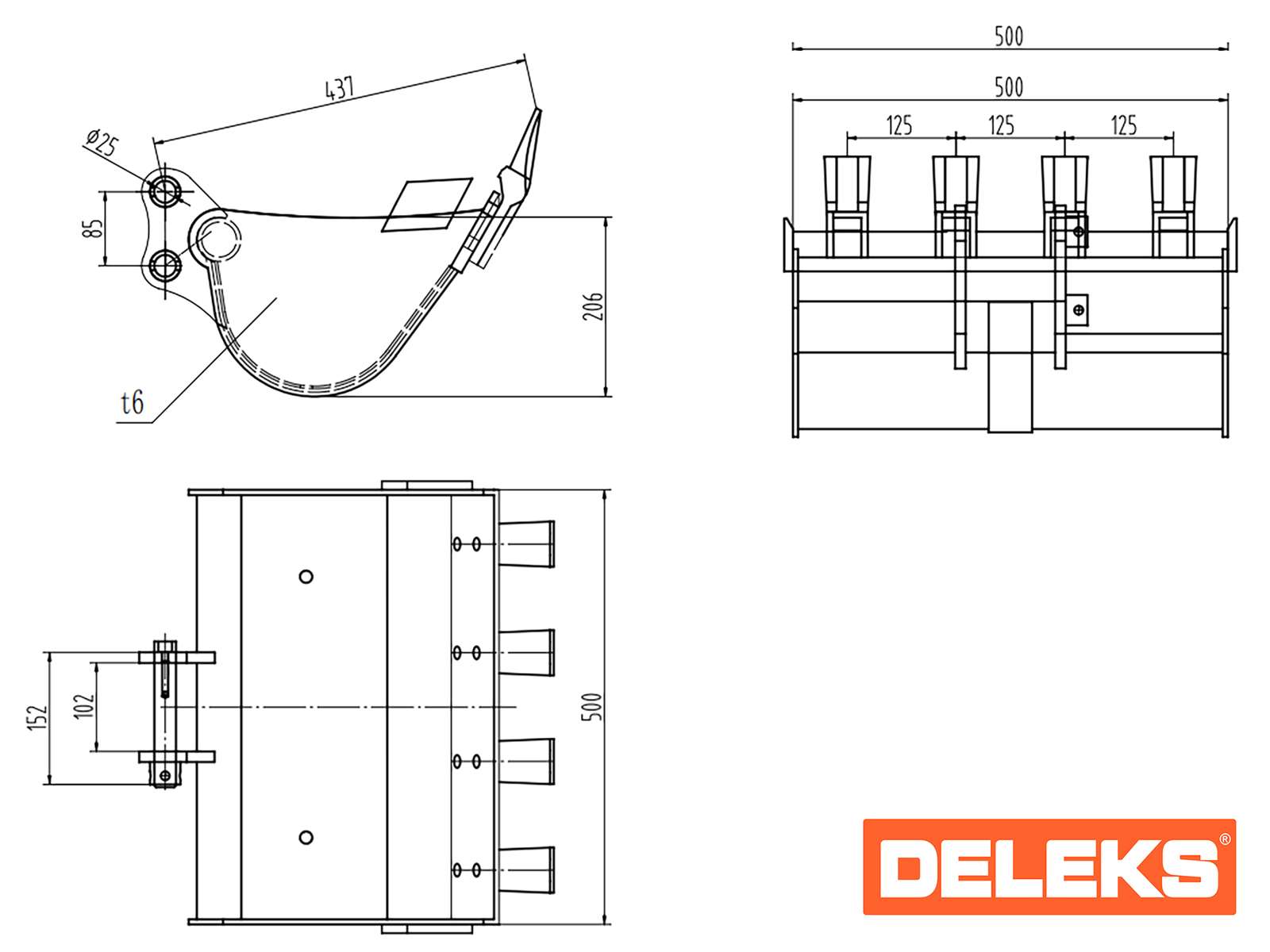 CLOSEBUCKET 50cm for DELEKS®S100 and KUBOTA S100, K008-3, U10-3, K008-5, U10-5 mini excavators.