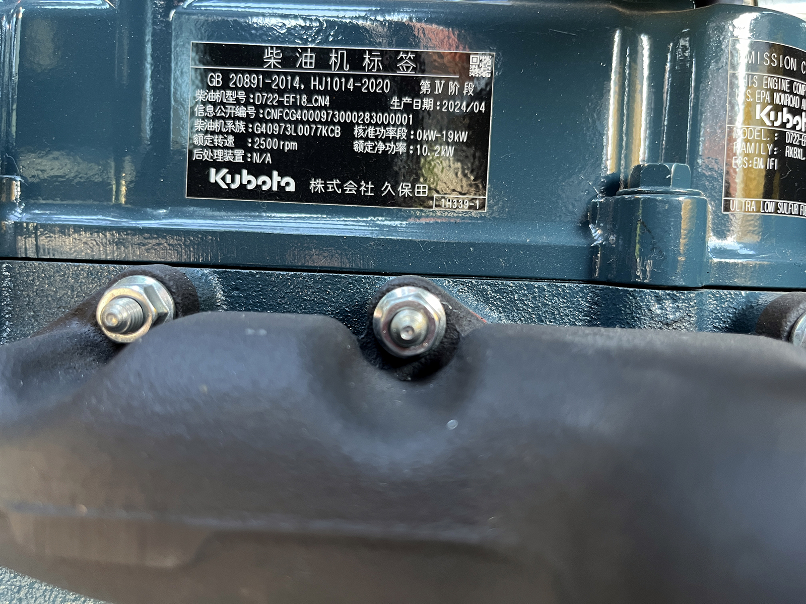 Kubota D722 engine, 13.7hp, 3 cylinders