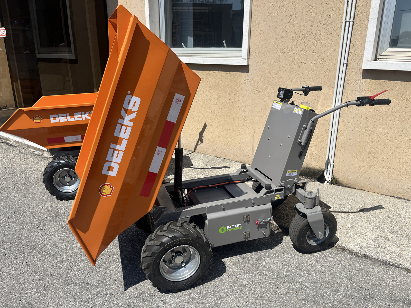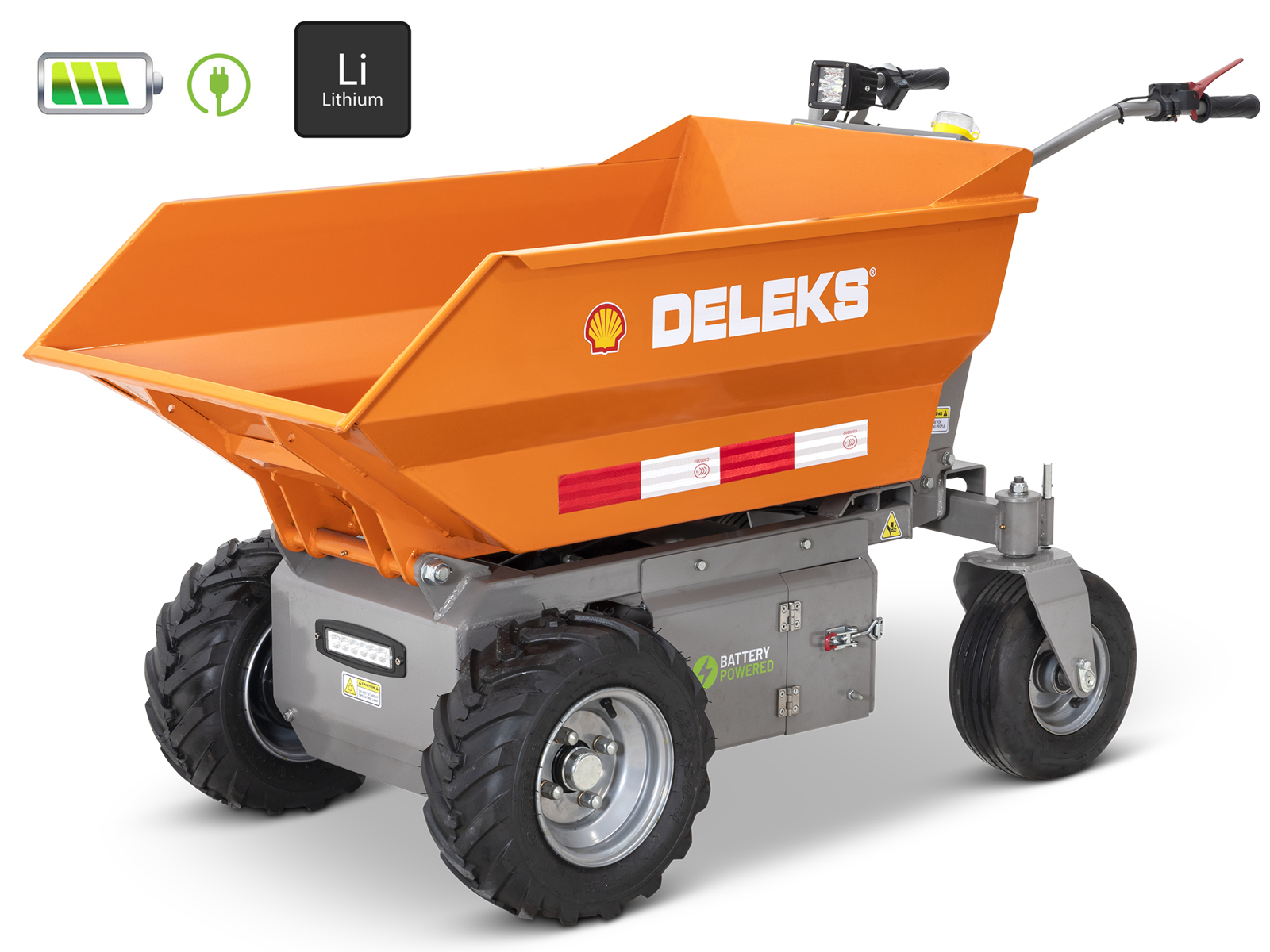 DELEKS® XE-500He Lithium electrified wheelbarrow, removable lithium battery 48V 60Ah, Minidumper with electric motor, hydraulic tipping, dumper body, load 500kg.