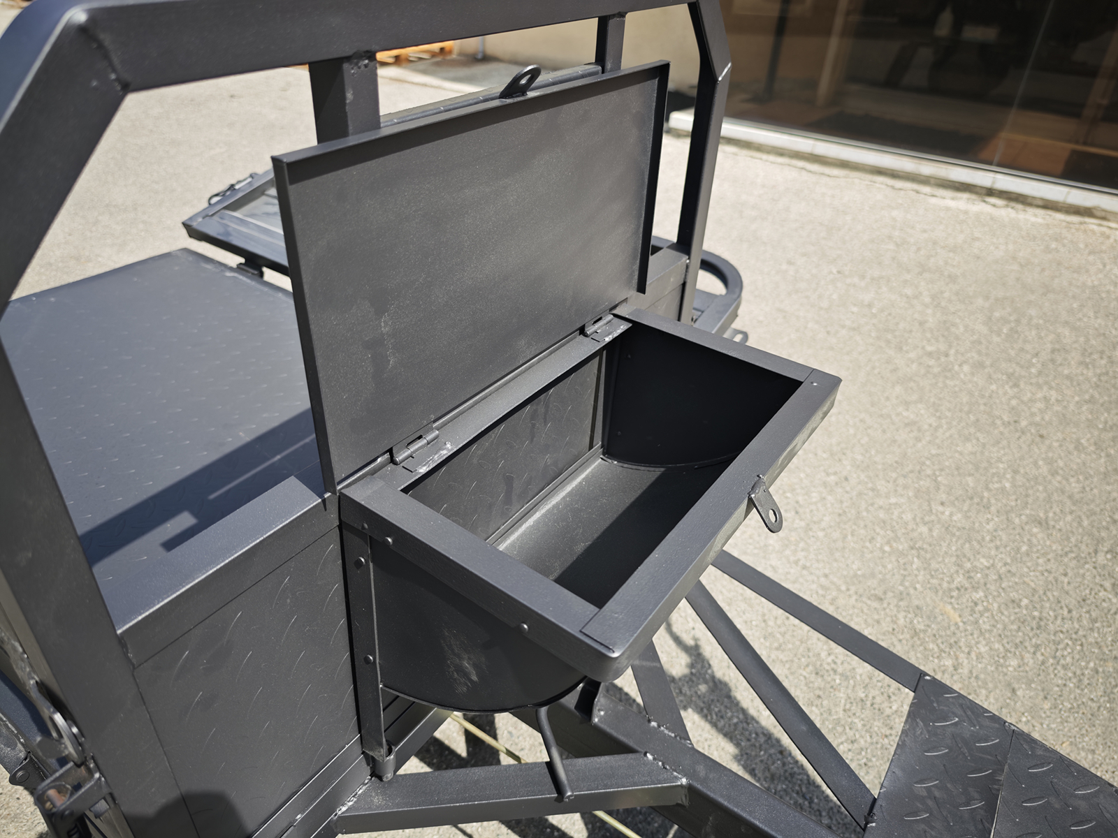 DELEKS® Tipping Trailer for two-wheel tractor. Compatible with BCS, Ferrari, and Pasquali walking tractors.