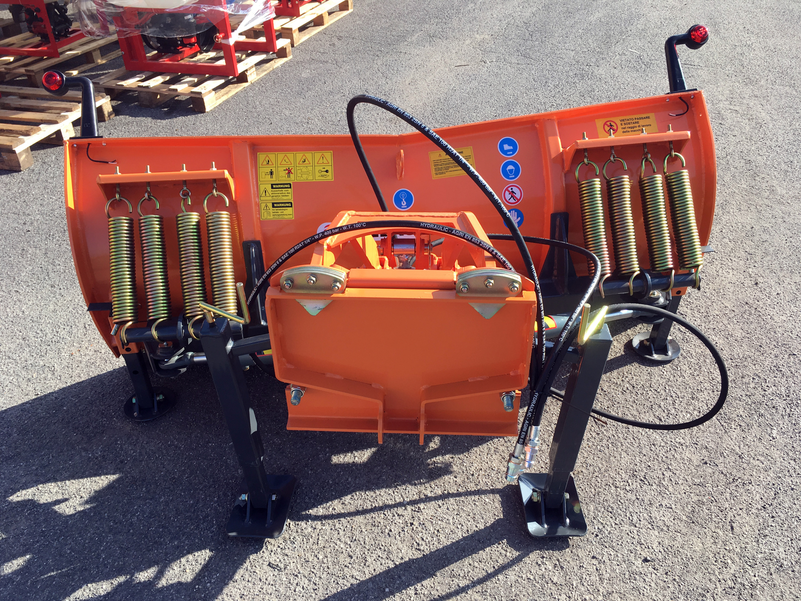 LN-175-A Frontal use Snow Plow with universal plate, with hydraulic lifting and angling. It attaches to the tractor via a quick coupling robust plate. 4 hydraulic pipes of 1.5m for front connection. On request we supply four hydraulic pipes to add an additional 4,0m of length. Our quick attachment system means pipes can be connected to the four hydraulic outlets of the tractor in seconds. The blade itself is sharp, replaceable steel edge (on request also available with Rubber edge), Couple of marker lights.