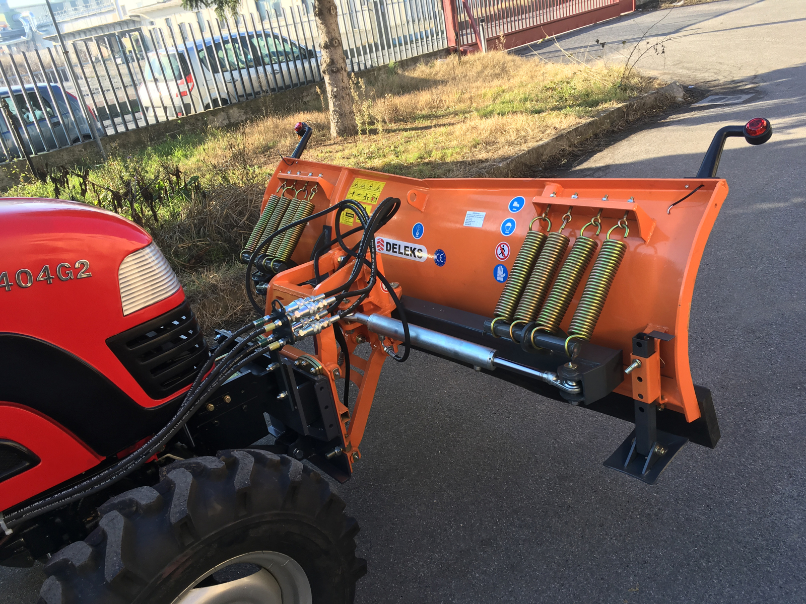 Frontal snow plow DELEKS® 175cm, with mounting plate for tractors John Deere, New Holland.. Homologated for road use.