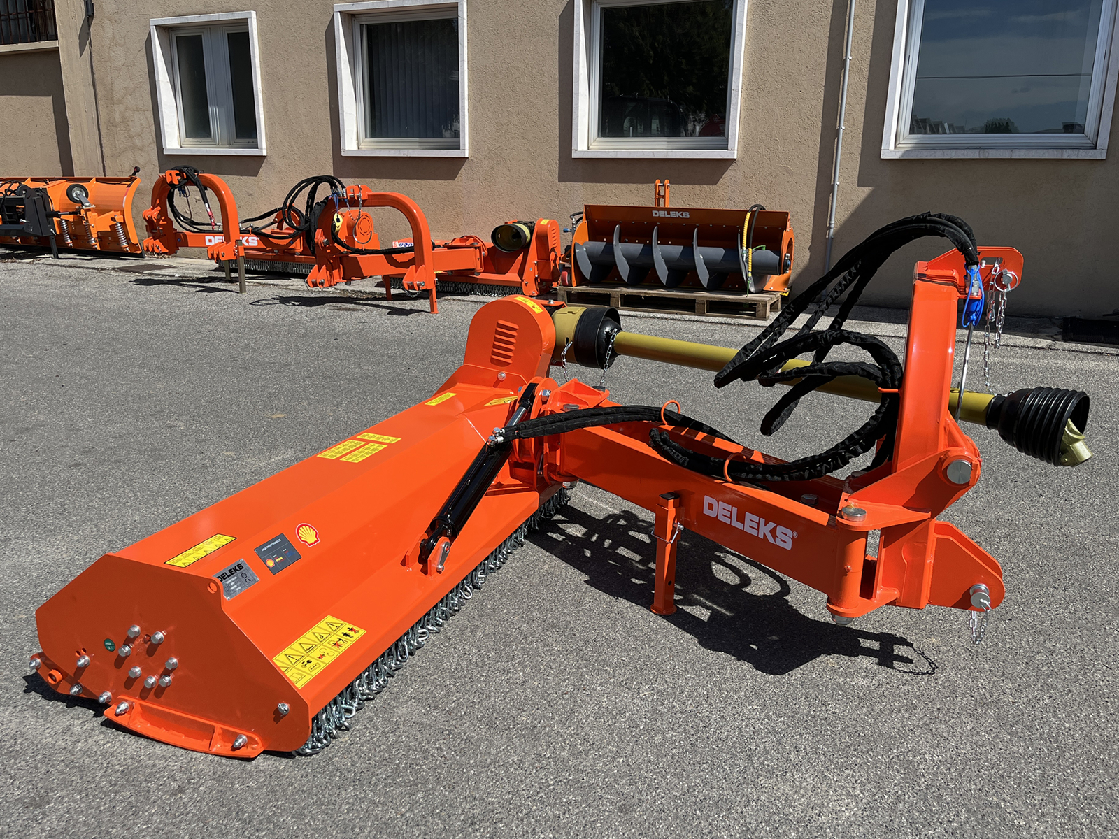 CLOSESideshift Flail Mower 478kg / 150cm, Offset Side Mulcher For Tractors - DELEKS® GIRAFFA-150 - External Gearbox - Wide angle Pto shaft CE included.