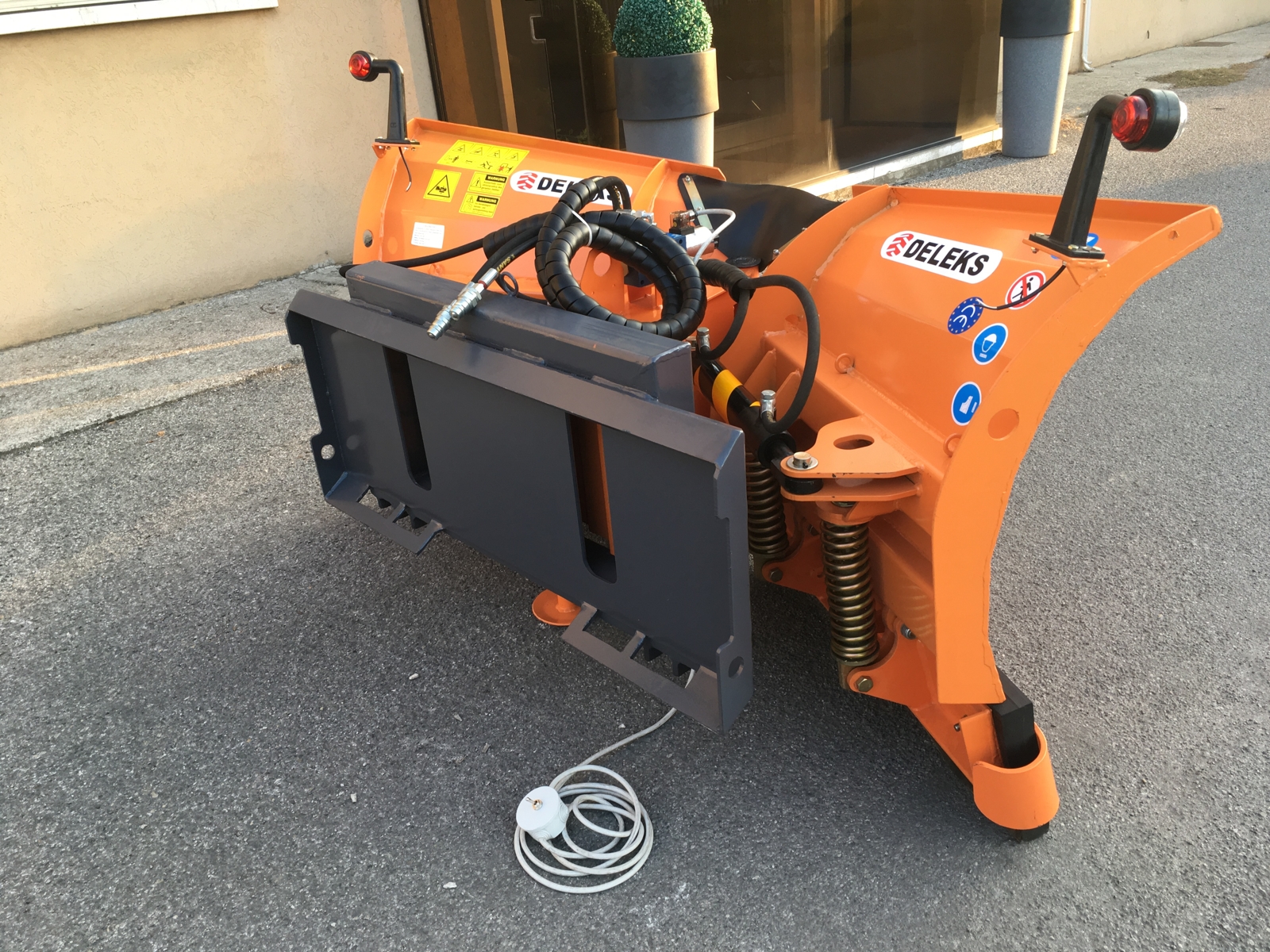 CLOSESnow plow, Snowblade 200cm/370kg for up to 3.0 ton Skid steer loaders - DELEKS® - 2 independent plowing elements - Hydraulically controlled plowshares.