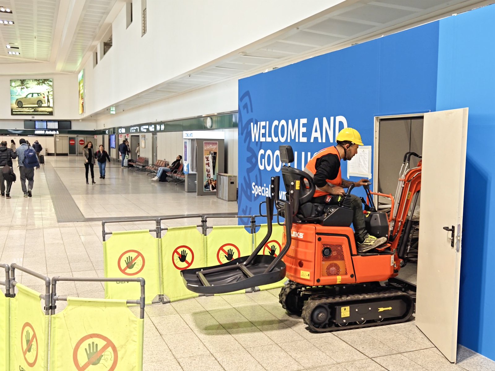 The DELEKS® E110 electric mini excavator was used for the complete renovation of internal restrooms at Milan Malpensa International Airport (MXP).