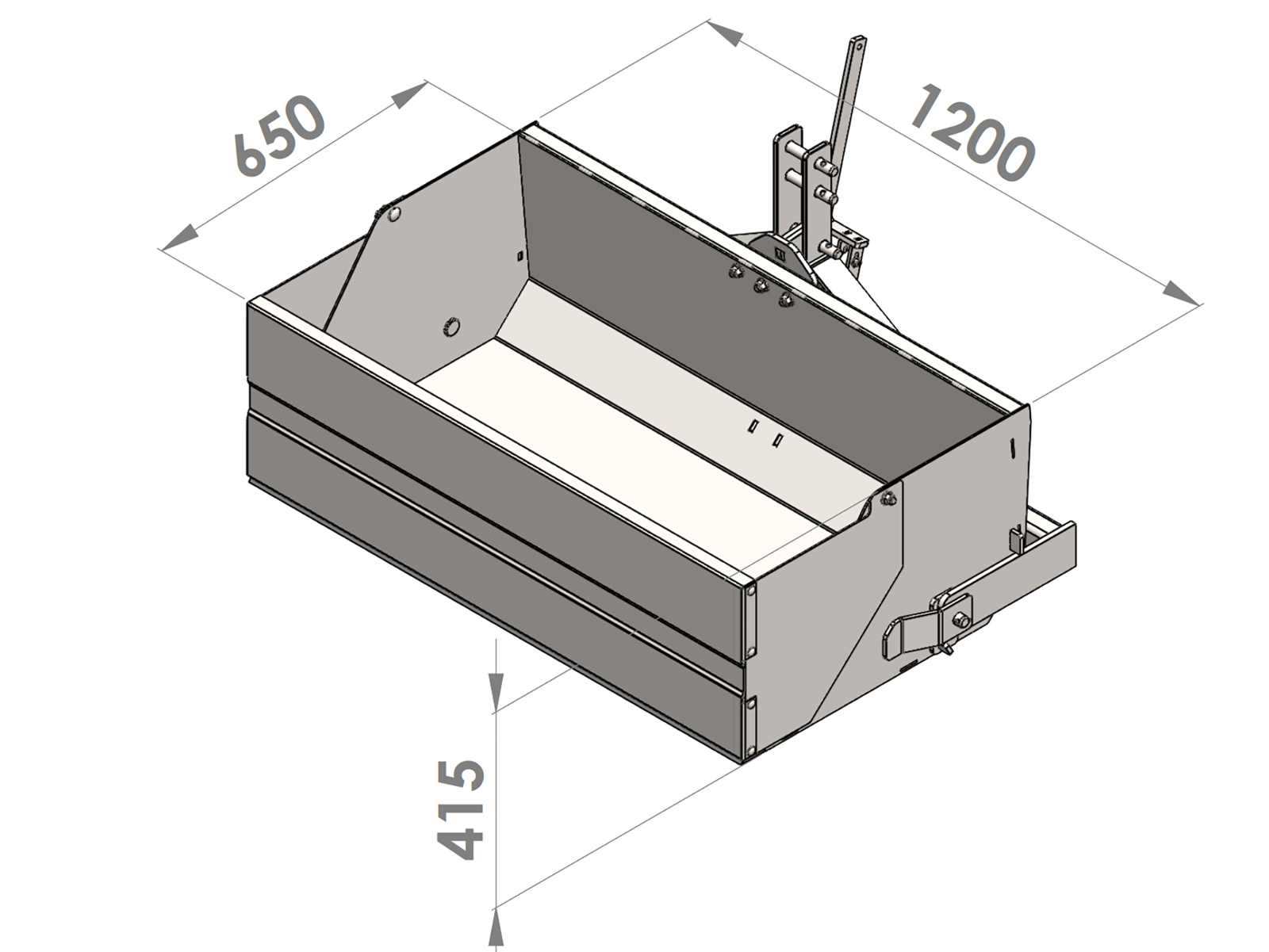 Tipping Transportbox 120cm in HARDOX & SSAB steel for tractor, with rear panel