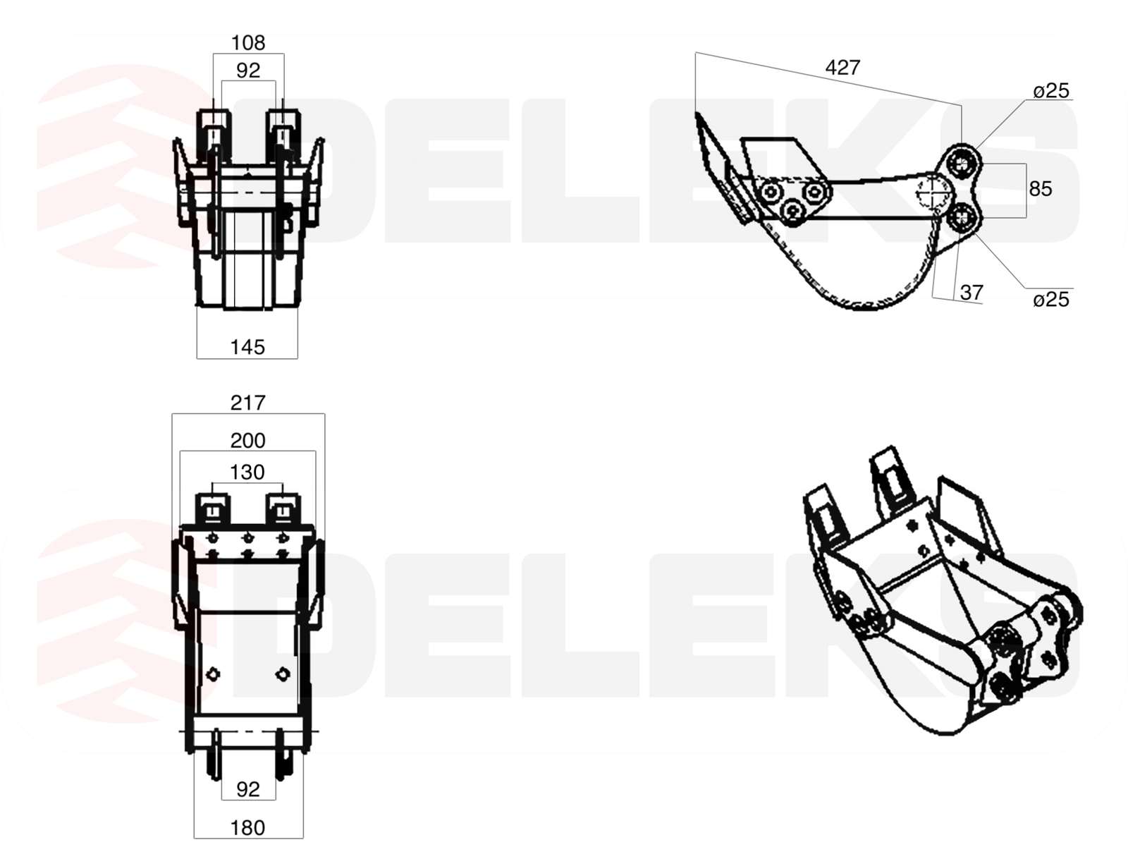 Bucket for miniexcavator M80/M90/M100/M120 - 20cm