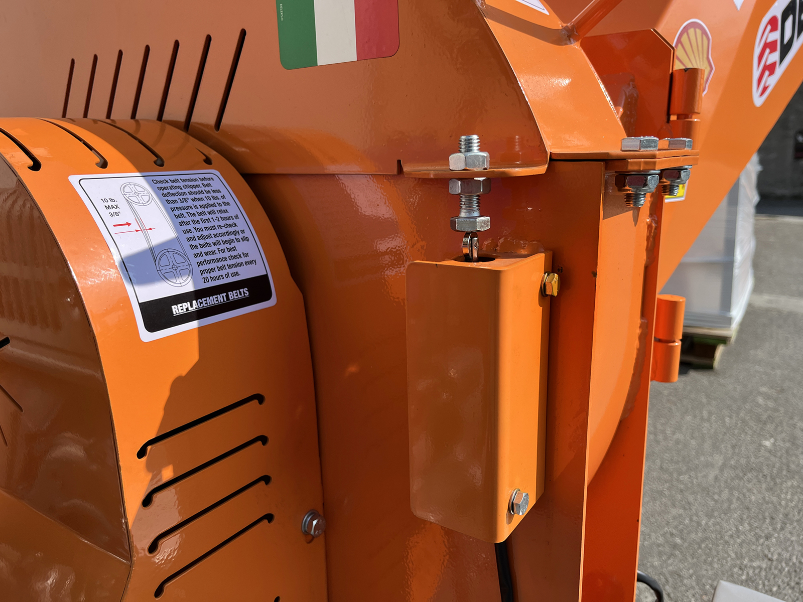 Redesigned outlet made with a thicker tubular. Its height of 1,8 m allows the material to be discharged directly into compost containers or on the truck body. In a few seconds with the two butterfly levers it is possible to adjust the direction or remove it.
