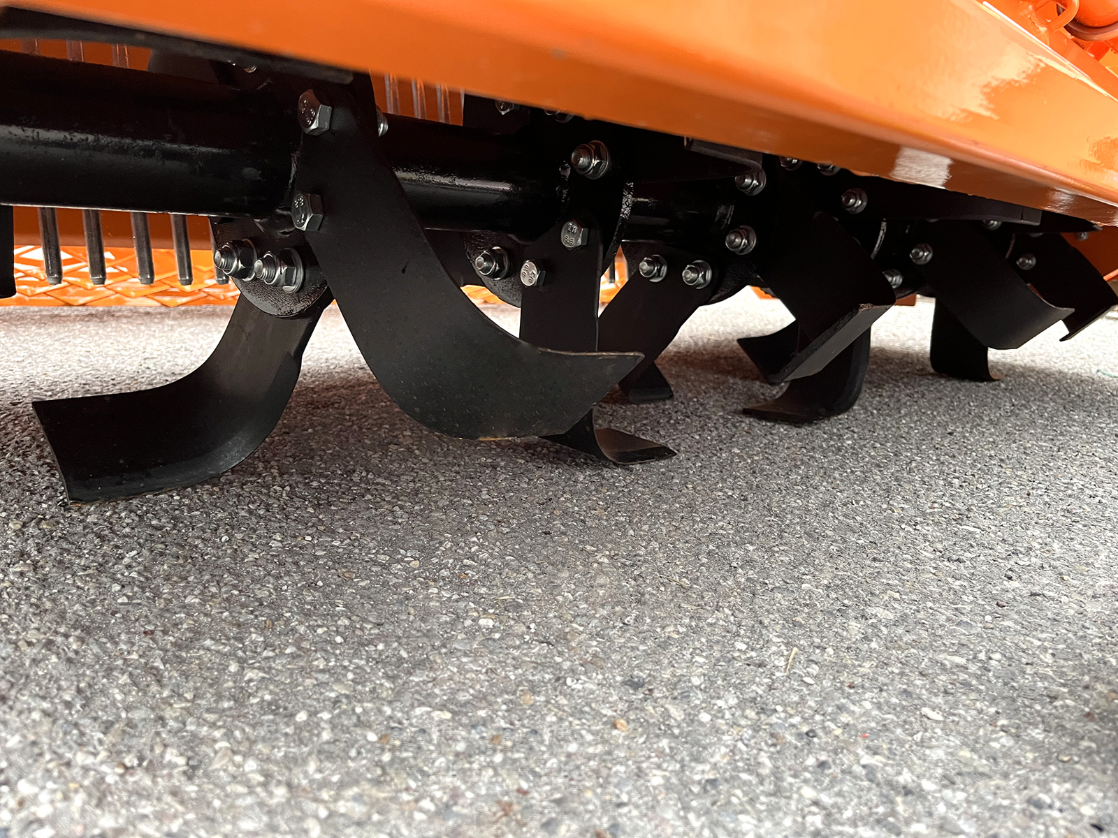 DFU-160 Stone burier for compact tractors 30-50hp e.g New Holland Boomer 30-40, John Deere 3-4 Series, Kubota L, Lamborghini, McCormick, Carraro, Goldoni, etc. The DFU-160 Stone-Burier is the perfect machine to prepare a smooth seed bed in any type of soil, including heavy soils and hard clay. It has been designed for greenhouse cultivation, preparing the soil for planting, flower beds and gardens. Single Speed Gearbox with 540 RPM PTO, Chain Side Drive. Delivered assembled (except 3 point linkage and rear roller) and greased, Gearbox filled with oil.
