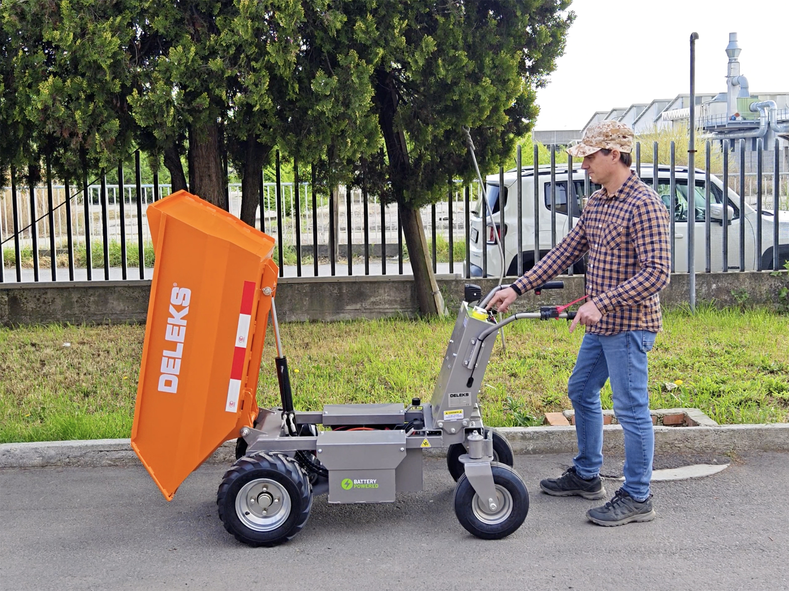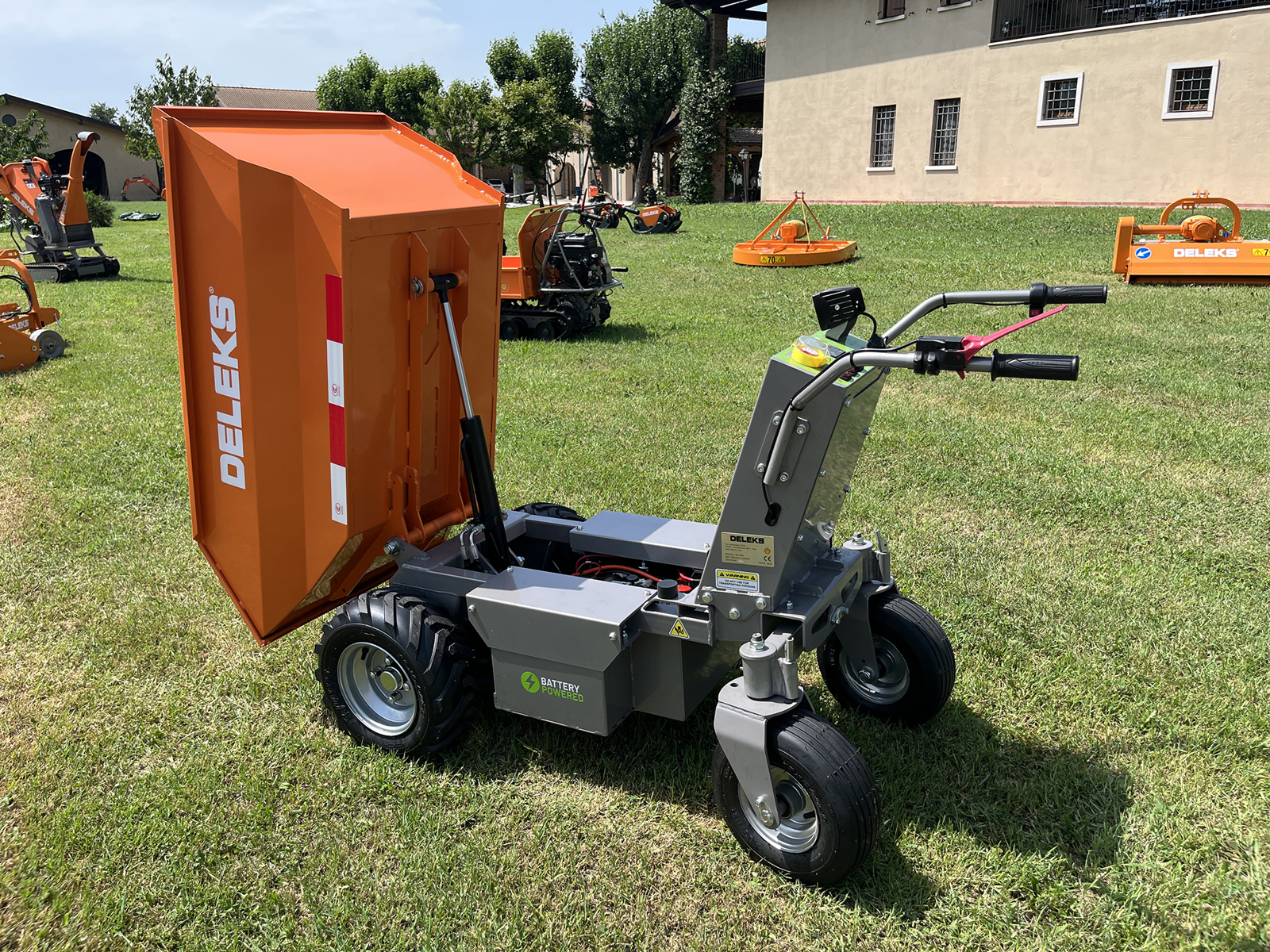 DELEKS® XE-500He electrified wheelbarrow Minidumper with electric motor, hydraulic tipping, dumper body, load 500kg.