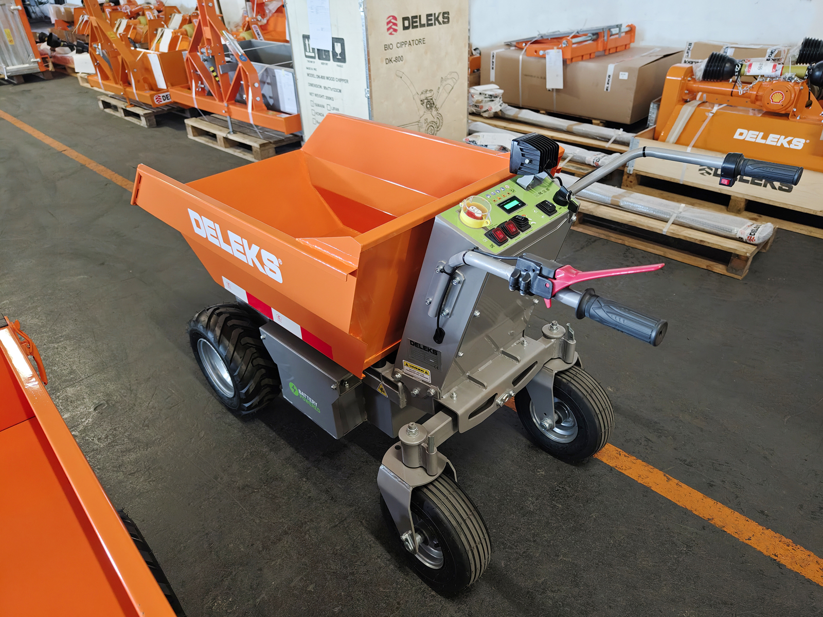 This DELEKS® wheelbarrow with electrified motor can carry a load of 500 kg, it does not make any noise, it is therefore ideal in landscaping, construction, riding stables, greenhouses or stables, for transporting waste, clods, sand, gravel, shrubs, wood, rocks, earth, etc.