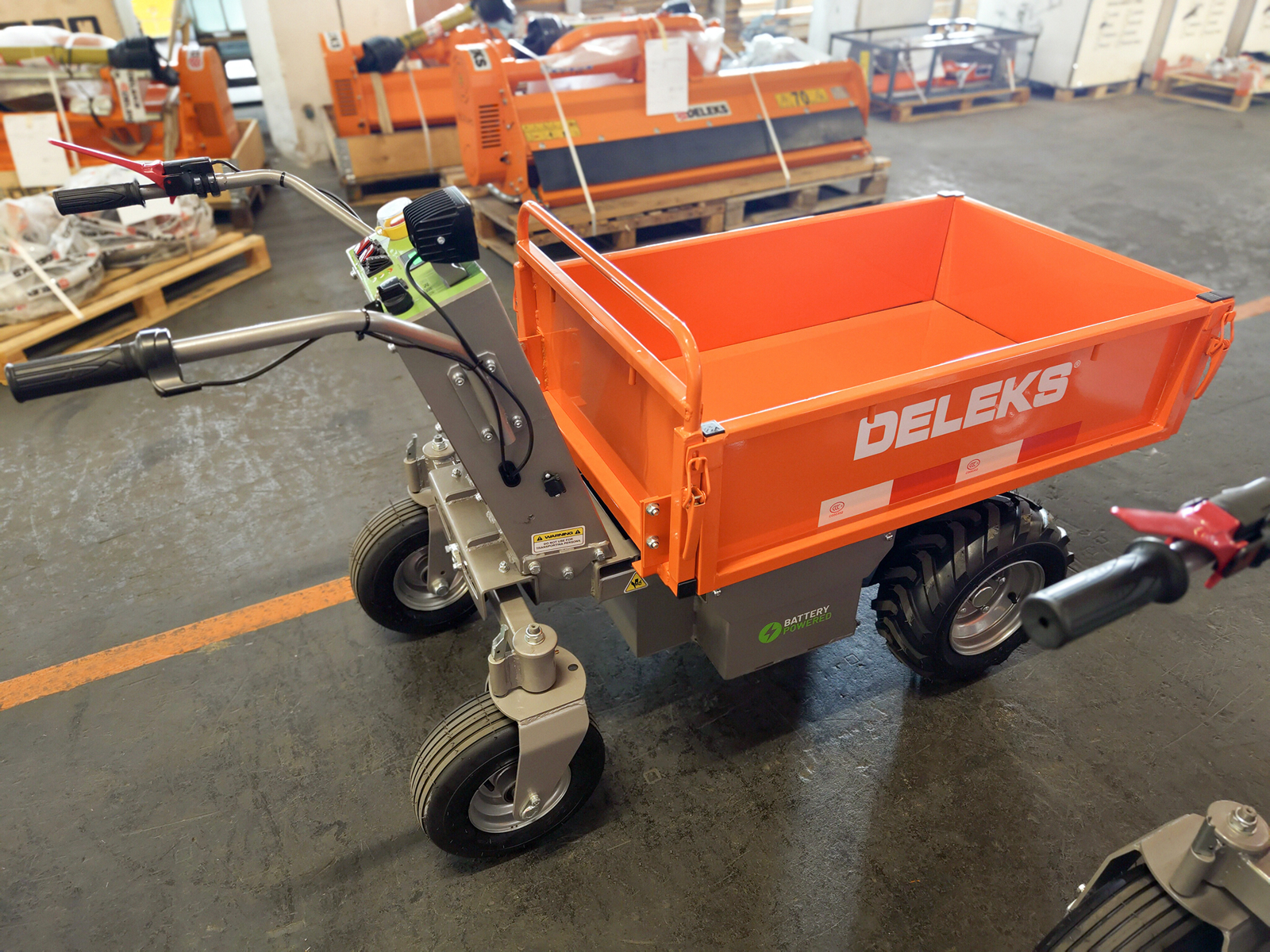 DELEKS® XE-500Hf electrified wheelbarrow for wooden logs - Minidumper with electric motor, hydraulic tipping, load 500kg.