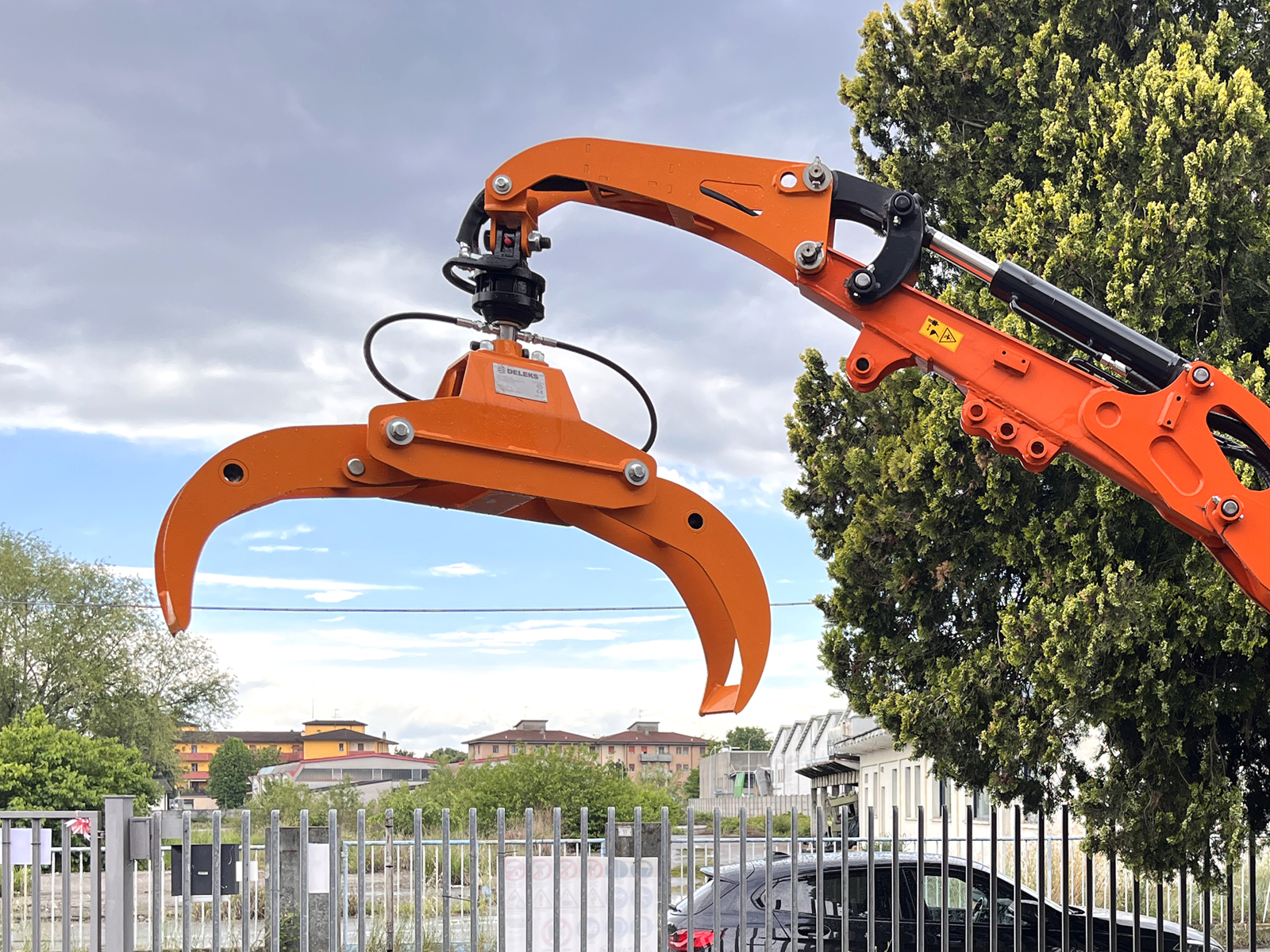 CLOSELog Grapple for Mini Diggers and Forest Cranes 1.5 – 3.0 Ton DELEKS® DK-10 + Lombarda Ingranaggi Rotator - Made in Italy.