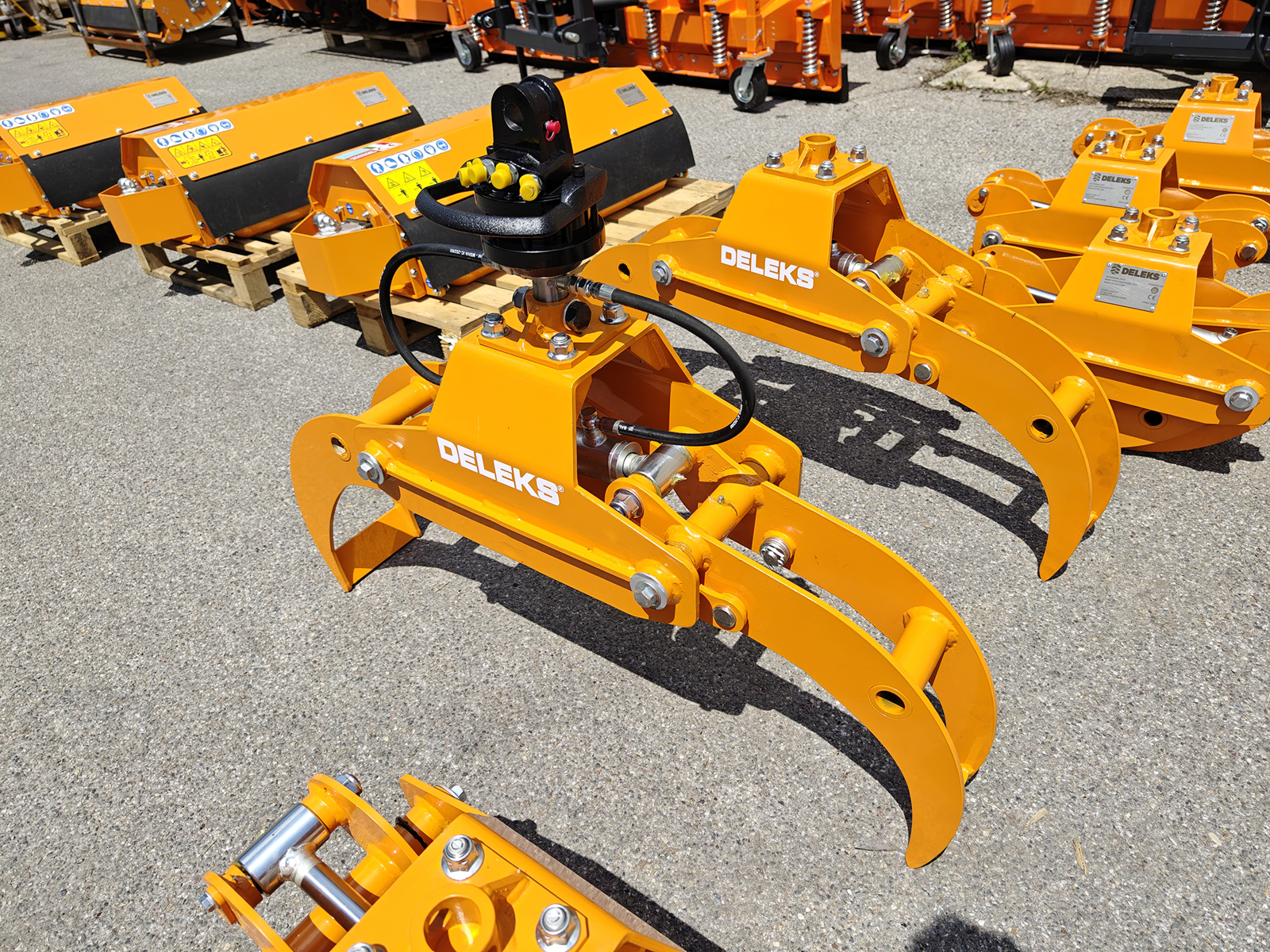 Log Grapple for Mini Diggers and Forest Cranes 1.5 – 3.0 Ton DELEKS® DK-10 + Lombarda Ingranaggi Rotator - Made in Italy.
