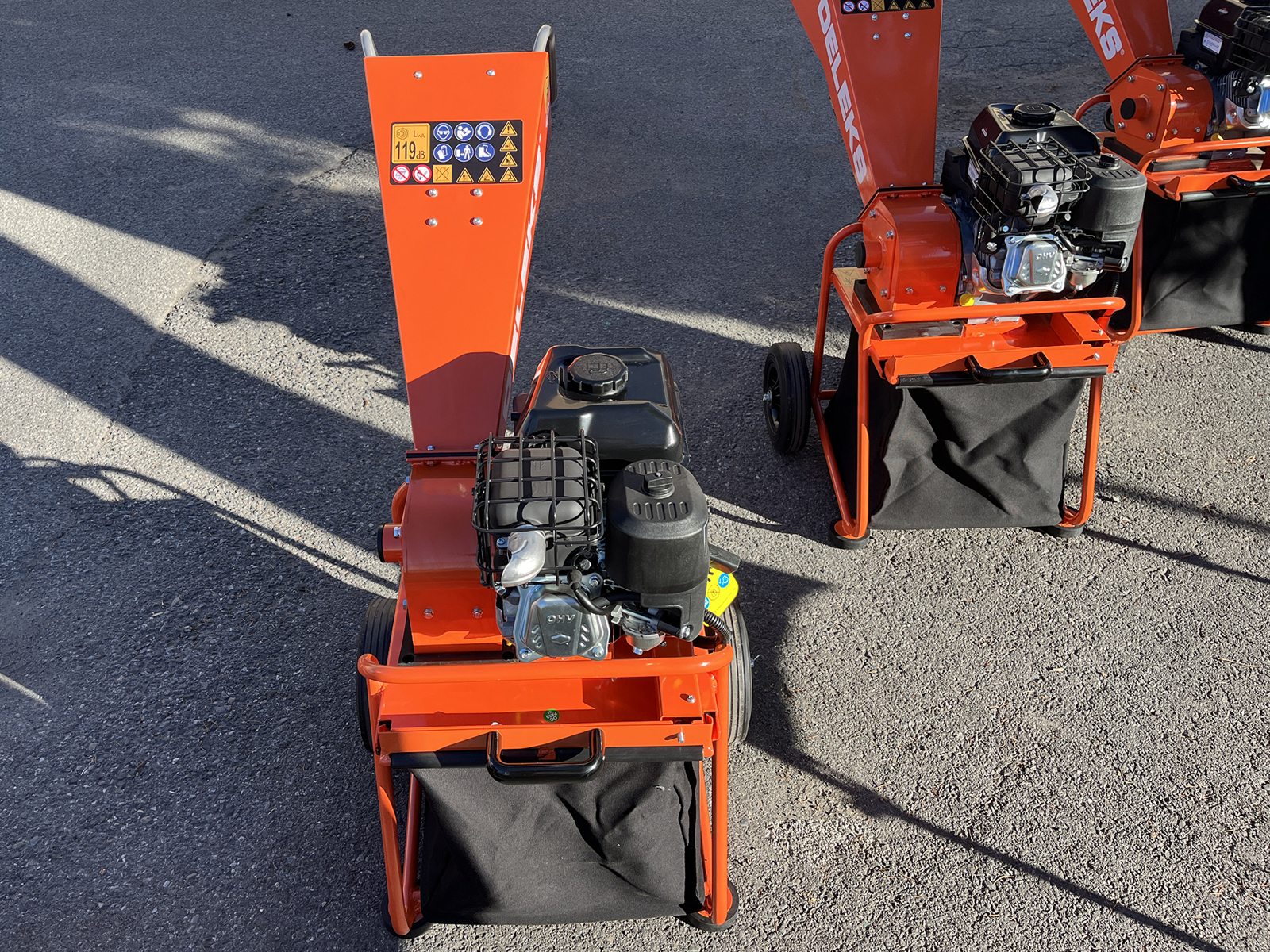 CLOSEWood Chipper DELEKS® DK-300-LC with Loncin 6.5 Hp engine, 4 stroke gasoline engine. 2 reversible knives of special steel.