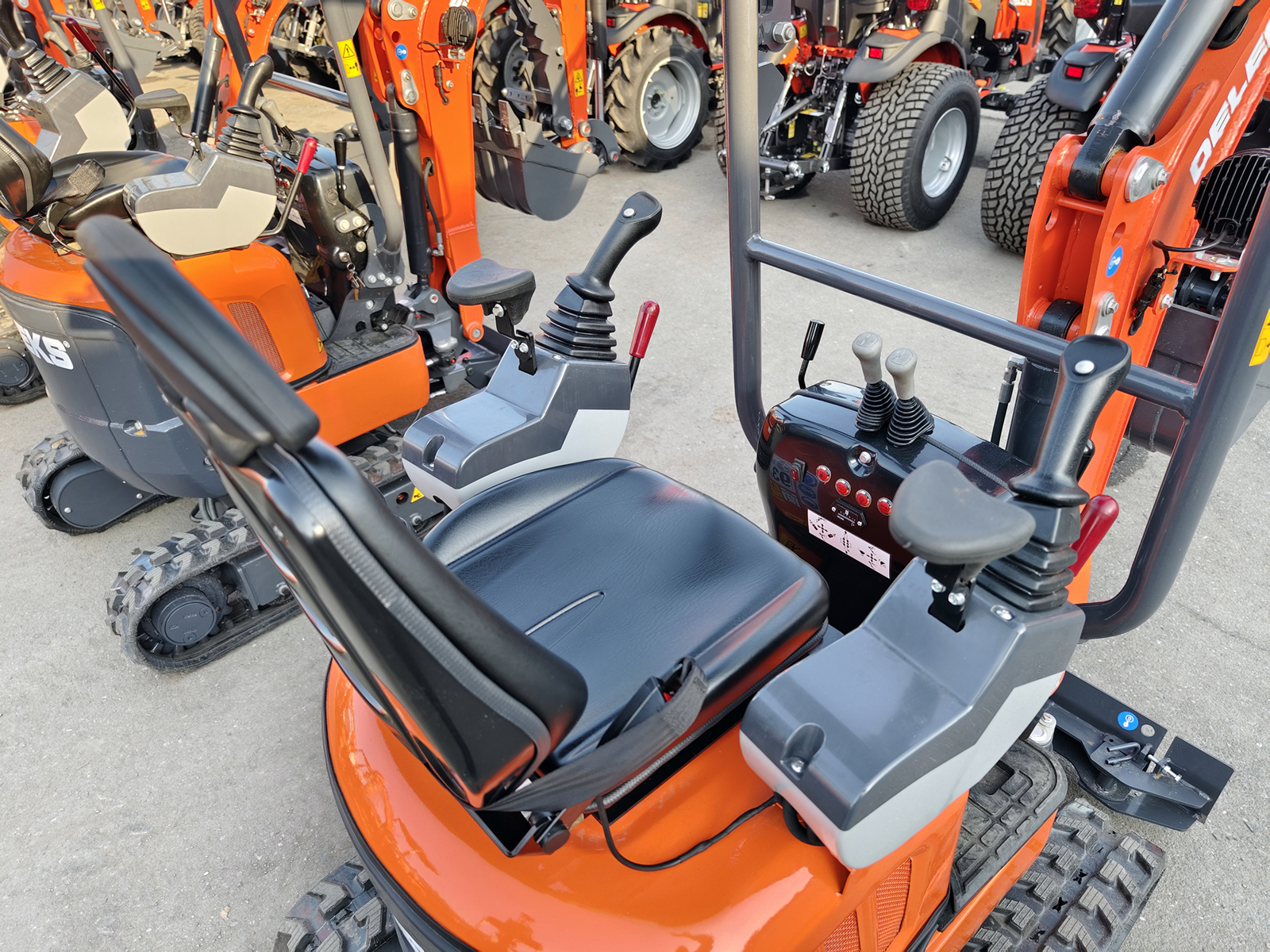 Den kompakte DELEKS® S100-minigraver med nul bagudhæng er udstyret med en Kubota D722-dieselmotor med 3 cylindre, en hydraulisk kontrolventil og sidejoysticks fremstillet i Italien, et udtrækkeligt undervognssystem og to hastigheder, der styres via venstre pedal.