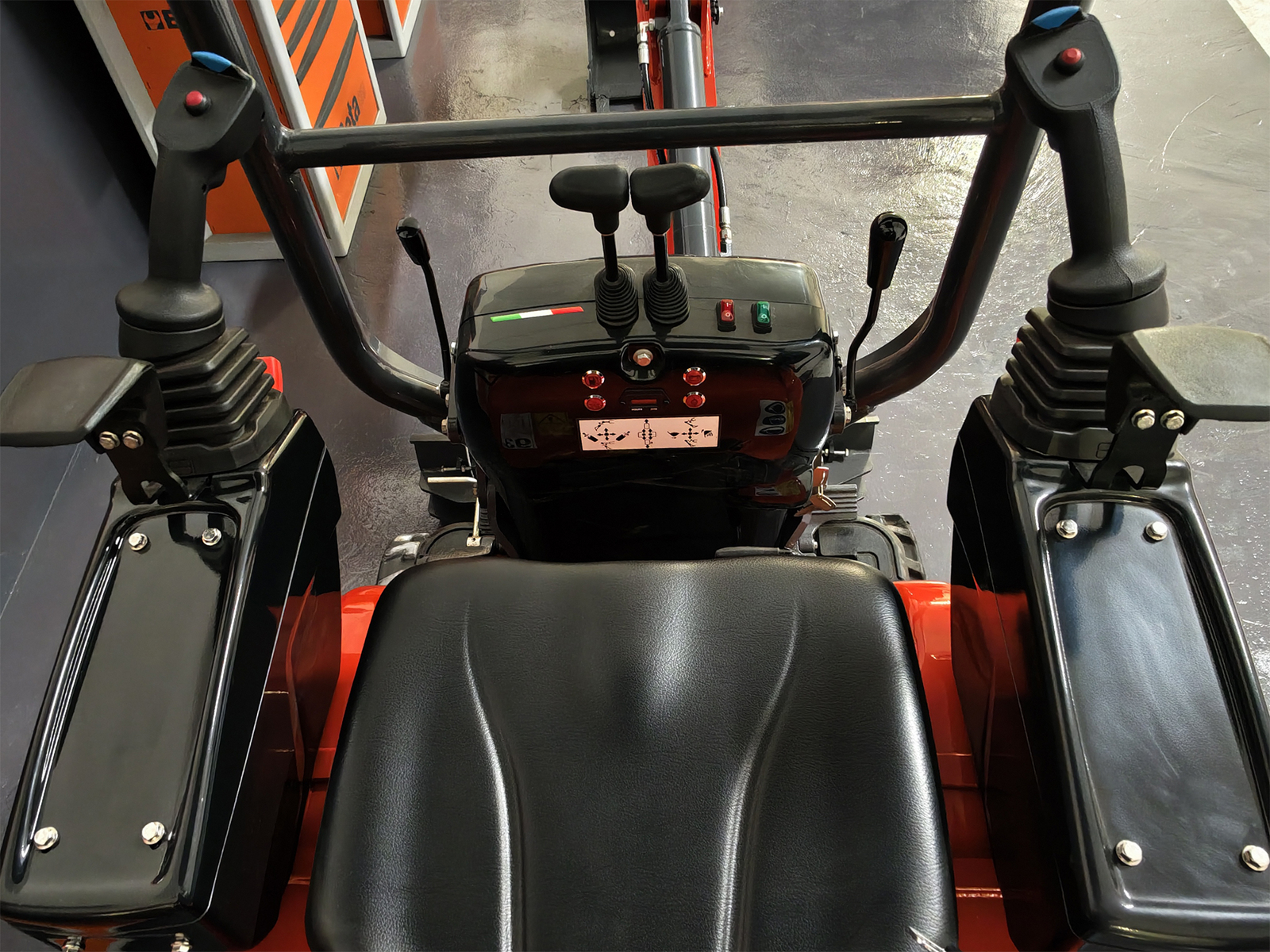 The ergonomic side joysticks Made in Italy offer a natural driving position and precise control, while the hydraulic valve manufactured in Italy ensures smooth and consistent operation even under load.